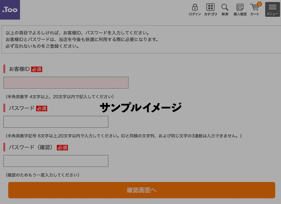 お客様ID/パスワードは、画面の説明を参考にして自由な文字列をご入力ください。