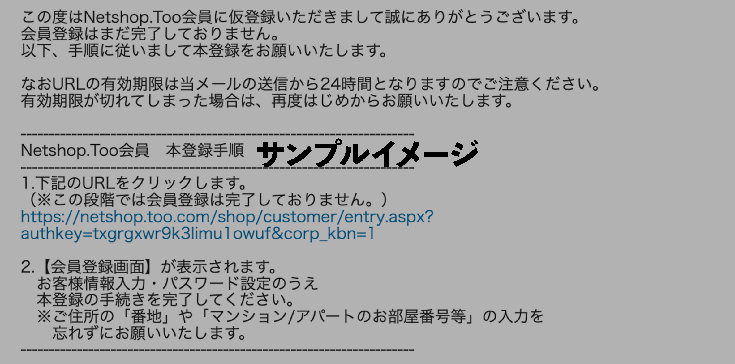 メール内のNetshop.Too会員 本登録手順 1. のURLを押してください。