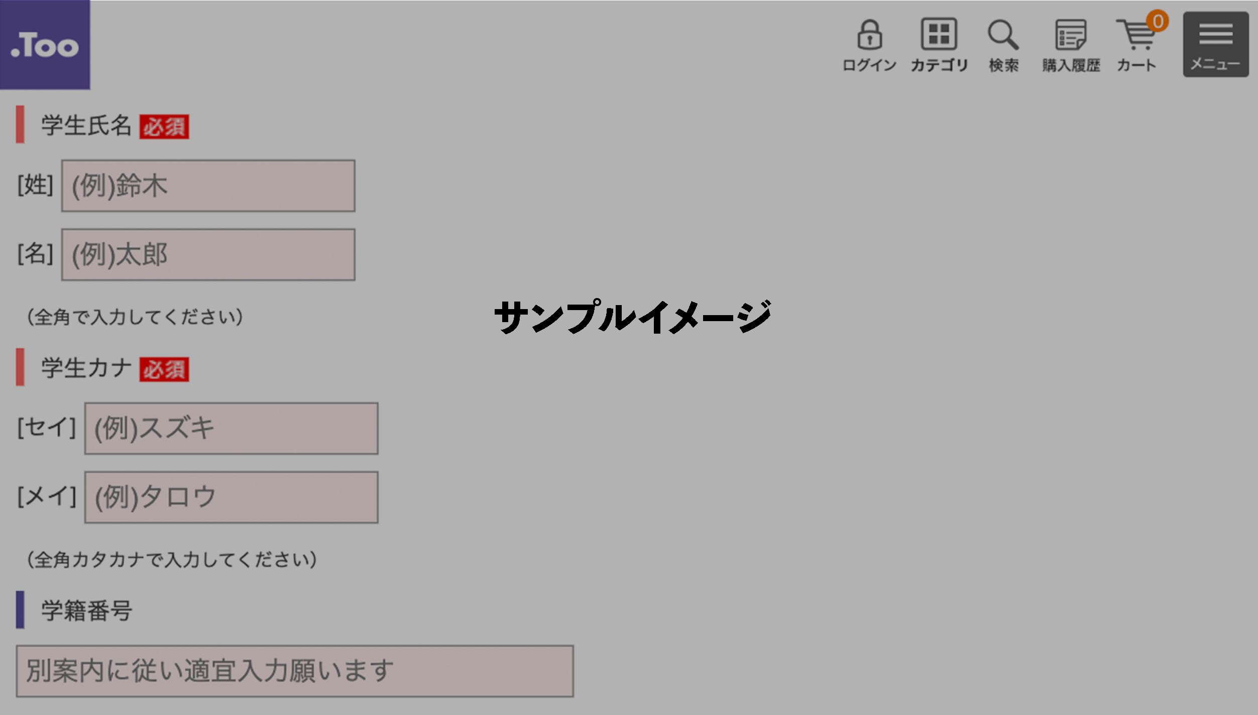 <↓サンプルイメージ(入力画面_学生氏名/学籍番号)>
